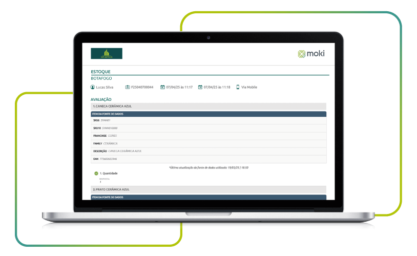 Com o Moki, é possível realizar contagens diretamente pelo smartphone, com leitura instantânea de códigos de barras, registro fotográfico e integração direta com ERPs (alimentando o sistema automaticamente sem chance de erros).